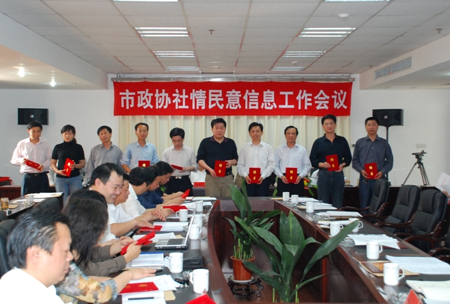 5月19日,市政协召开社情民意信息工作会议。会议传达了泰州市政协信息工作会议精神,通报了市政协2007年度信息工作情况,表彰奖励了2007年度信息工作先进个人,聘请了20名同志担任市政协十一届委员会特约、特邀信息员。泰州市政协研究室副主任王春满应邀向与会同志作辅导讲座。