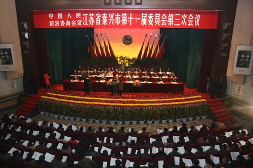 1月12日下午,政协泰兴市第十一届委员会第三次会议在东进影剧院隆重开幕。