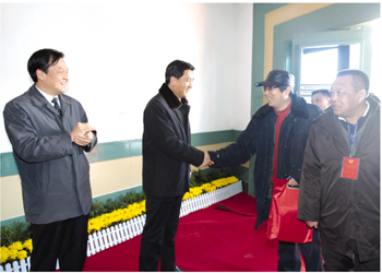 大会开幕前,张兆江、高亚梓等市四套班子领导在门前迎接与会的政协委员。