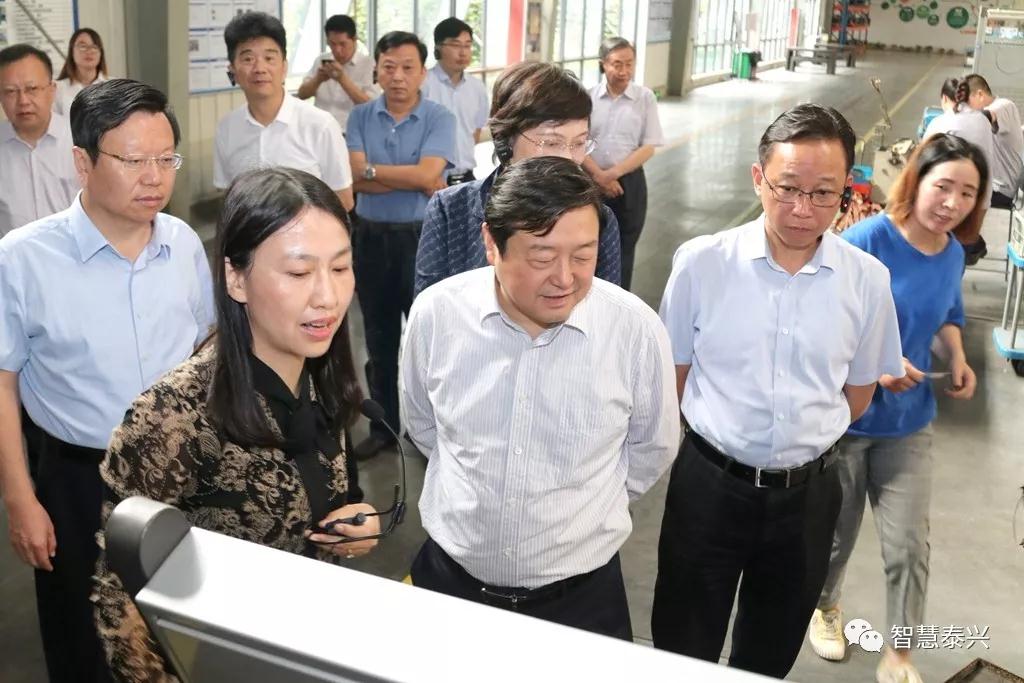 在泰兴高新区,卢佩民一行先后来到科兴电器互感器生产智能车间、纳新新能源锂离子电池智能制造车间,了解企业智能装备运用、车间设备联通、生产过程调度、资源能源监控等方面的情况。